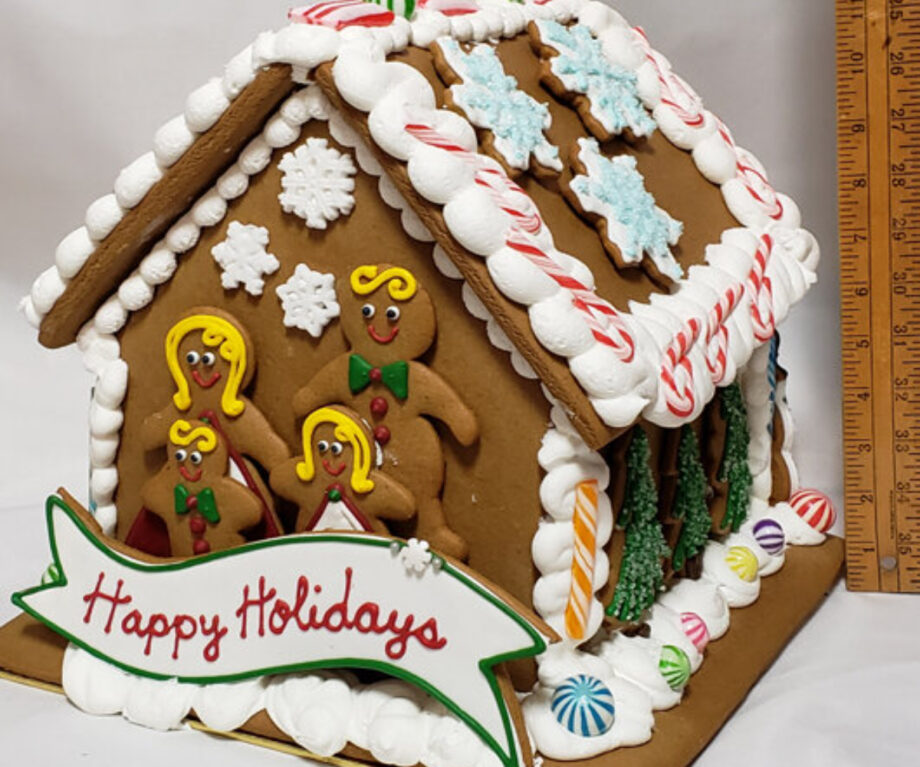 This fully custom gingerbread house from The Gingerbread Factory is the perfect centerpiece for your holiday table as it is ultimate holiday centerpiece. Decorated with candy canes, gumdrops, skittles, sassy balls, plus your customizations, this extra-large gingerbread house stands at 11 inches tall and is sure to impress.