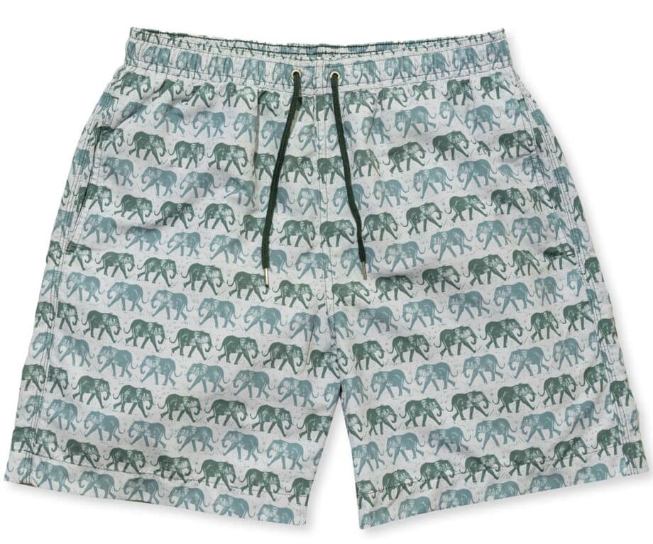 BUNKS‘ men’s designer Elephant Swim Shorts look good if you’re in a beach club in the Maldives, by a pool in Spain or sat on a sandy beach in Britain. These mid-thigh length swimming shorts are full of features and come in a distinctive and bold elephant print design. They are made from a fast-drying fabric, UPF 50+ rated and have an elastic waistband with drawstring.