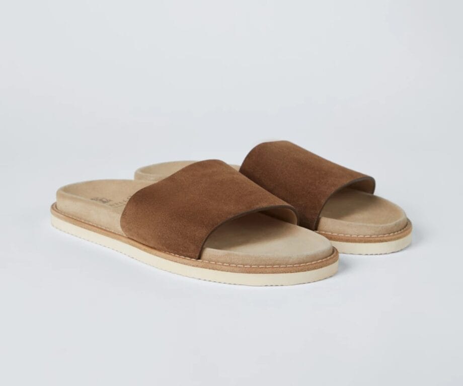 The excellence of Brunello Cucinelli materials enriches the casual, summery style of these Urban Slides. The upper’s soft suede band has a comfortable design and is paired with a very lightweight rubber tread for optimal comfort while relaxing.