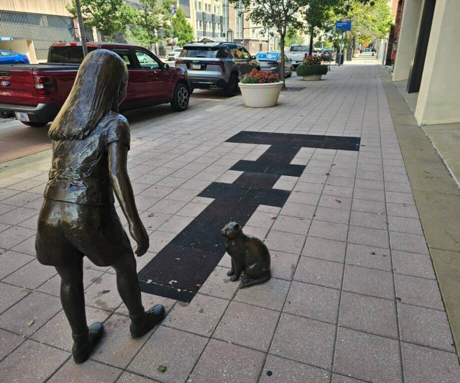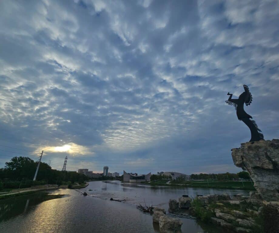 This morning I walked past The Keeper of the Plains, an iconic 44-foot steel sculpture by Native American artist Blackbear Bosin that was installed at the river confluence in 1974 to honour the city’s Native American heritage.