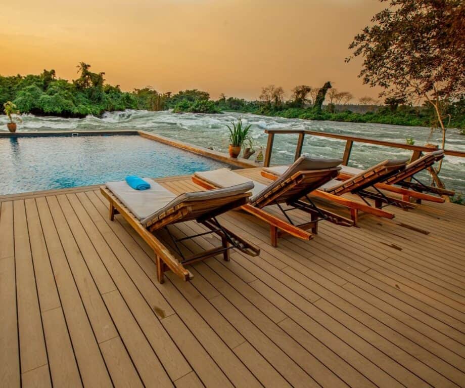 Located on a private island encircled by the thunderous rapids of the mighty Nile River, this lodge is accessible only by boat. It has a gorgeous rock pool carved into granite which overlooks the dramatic white water, making it one of Africa’s most photogenic swimming spots. Guests take in the hypnotic sounds and sights of the Nile while enjoying guided walks, wildlife spotting (including giant otters and many rare bird species), spa treatments. It must surely be Uganda’s ultimate riverfront relaxation spot!