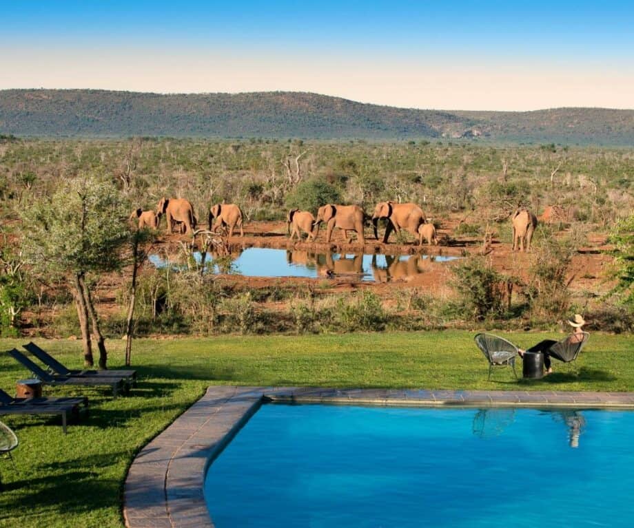From this dramatic vantage point, guests frequently watch elephants and other wildlife below while basking in luxurious privacy. The pool is lined with shaded loungers and daybeds, making it a stunning setting for game viewing, swimming, and sundowners. The lodge’s elevated position ensures breathtaking panoramas, and each of its villas provides five-star amenities for a truly exclusive safari retreat.