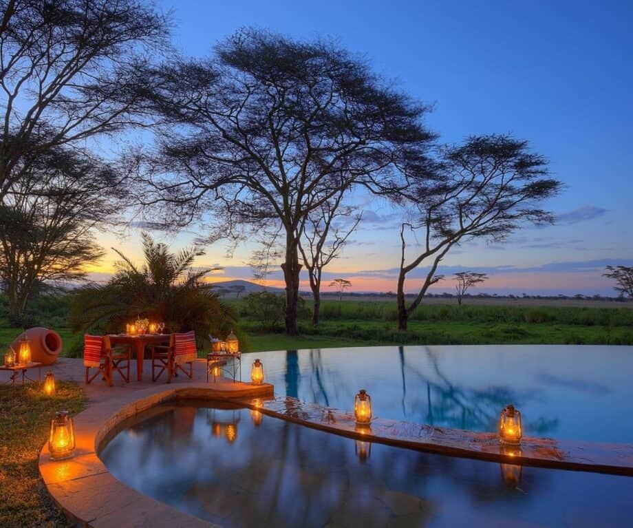 The infinity pool at the award-winning Amani Spa is an absolute treat after a long day exploring the wilderness with sun loungers, a hot tub, attentive butler service, and massage tent for wellness treatments. But its magic is truly revealed at dusk as the sky turns shades of pink and orange and the stars start twinkling through.  ​Your Maasai butler lights a roaring campfire, the cocktails and pre-dinner snacks come out – and the pool lights up with unique fibre optics, mirroring the constellation of Orion’s Belt. Pure magic!