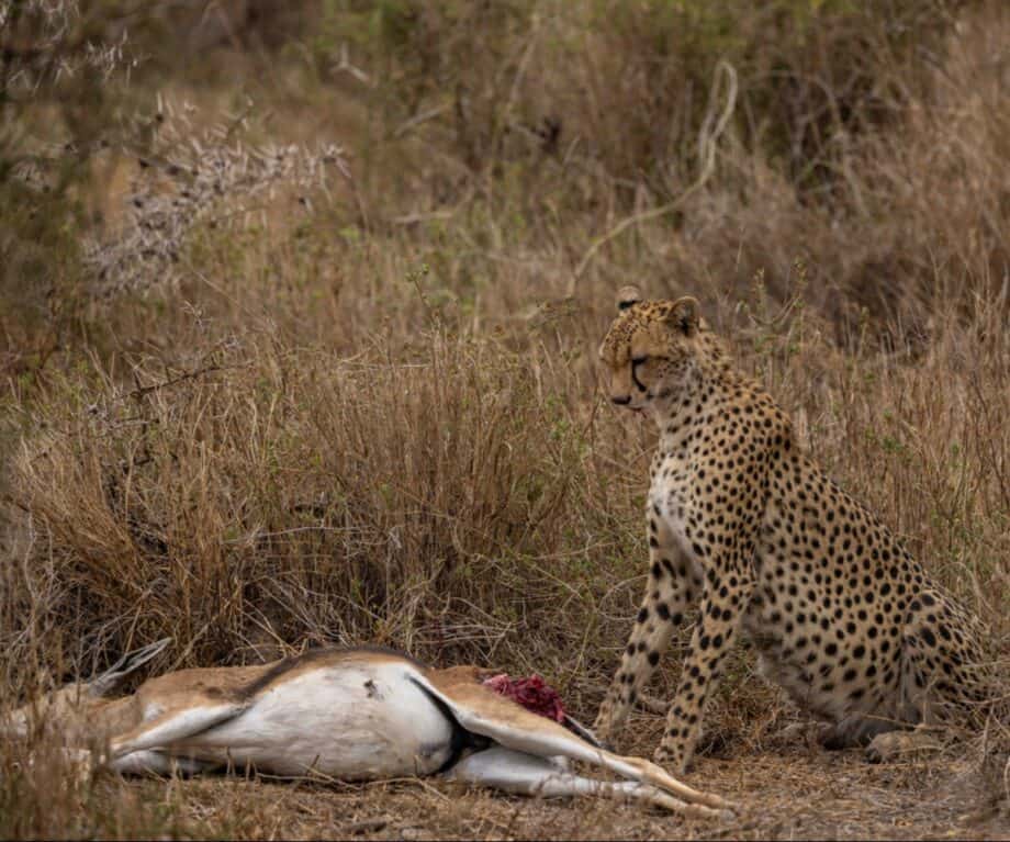 The views of Mt. Kilimanjaro are majestic and because the sanctuary is private, you have all the wildlife for yourself without having the share it with dozens of other game vehicles. Certainly something that can’t be said when visiting Amboseli National Park. Hence why I would recommend to do maybe 1 game drive to the national park but remain within the sanctuary for the rest of your stay. And honestly, the game viewing is superb. We saw mating lions, a lioness with cubs, a cheetah with a kill, tons of elephants of which some were among the biggest tuskers in the world,…. Truly a great experience!