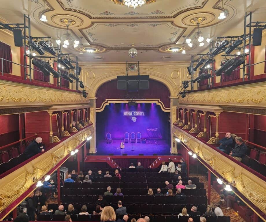 We saw a show at Leeds City Varieties — a Victorian music hall, with seating for less than 500. It’s an extremely intimate venue which brings performers and the audience into close quarters.